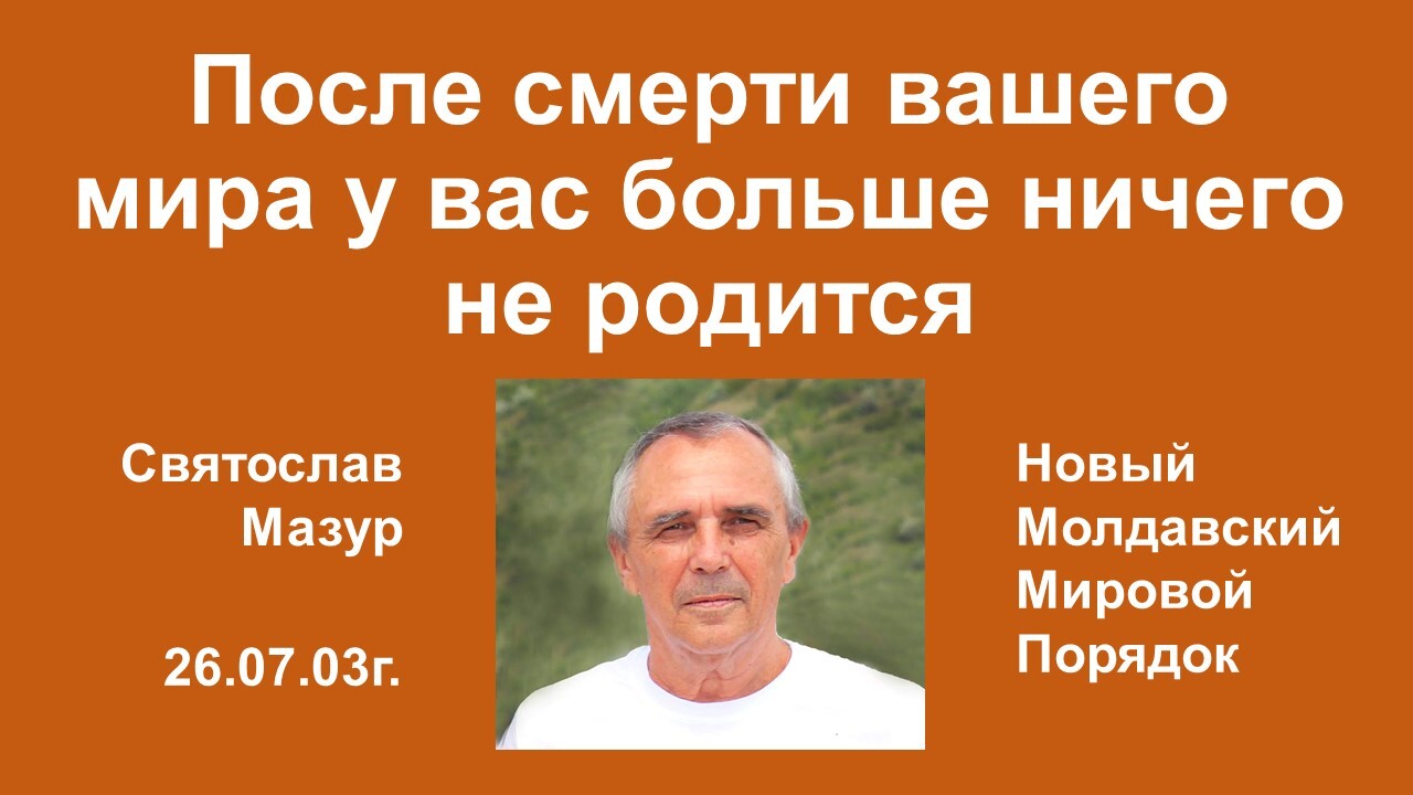 Итак, мир Истины наступил, а я, Святослав Мазур, Великий Магистр, Иисус Христос второго пришествия, Царь Царей, уже перевёл всё человечество на новый уровень развития. Это значит, что прежний мир умер и на прежнем, третьем уровне развития не может ничего больше родиться. Ибо живительная сила перешла на новый, четвёртый уровень реальности. Мировые игроки просто не понимают механизм живой Жизни. Говорят, что после смерти этого мира на его месте должна родиться новая реальность. Это ошибка, которая будет стоить им жизни. Идея отделения зёрен от плевел в том и состоит, что переход на новый уровень развития возможен только с помощью Божьего Суда, на котором я, Святослав Мазур, Великий Магистр, являюсь главой. Весь механизм перехода в мир Истины, Любви, благости и прогресса, то есть в Царствие Бога, я уже описал. И других вариантов перехода в мир Истины не существует. Поэтому я и не волнуюсь о завтрашнем дне, ибо понимаю, что только я один способен решить эту проблему и никто иной. И что всё равно, что бы не делали мировые игроки, как бы они не старались, им всё равно придётся преклонить колени перед единственной законной властью на Земле - перед Великим Магистром, Иисусом Христом второго пришествия, перед Царём Царей Святославом Мазуром. Других вариантов спасения не существует в природе.