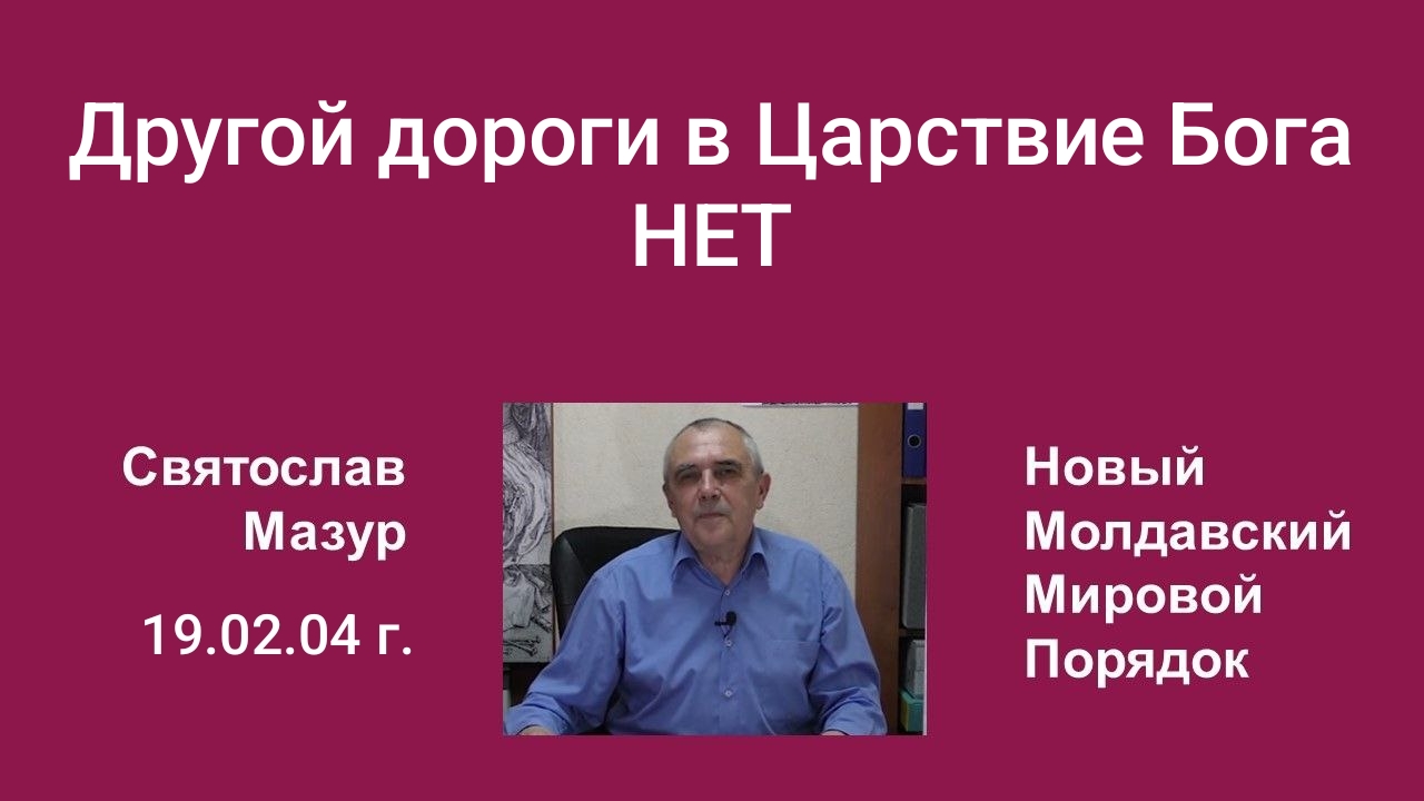 Сегодня, когда весь мир думает о завтрашнем дне, как о каком-то непонятном кошмаре я, Святослав Мазур, Великий Магистр, Иисус Христос второго пришествия, Царь Царей, однозначно заявляю, что человечество идёт к своему счастью, к концу времён тёмных и к началу благого развития, к золотой эре тысячелетия мира Бога на Земле. Но ему, этому человечеству, надо сделать осознанный выбор между жизнью и смертью, между добром и злом, между Богом и дьяволом, между Христом и антихристом. Кому-то кажется, что можно будет войти в Царствие Бога без пропуска, "за компанию", скопом. Но это грубая ошибка, ибо в Царстве Бога можно войти только с помощью Божьего Суда, на котором я, Святослав Мазур, Великий Магистр, Иисус Христос второго пришествия, Царь Царей, являюсь главным представителем Бога Отца Вседержителя. Кроме меня никто не может войти в Царствие Бога, ибо я, Великий Магистр, и есть дорога, ведущая в Царствие Моё. Другой дороги в Царствие Бога нет и быть не может.