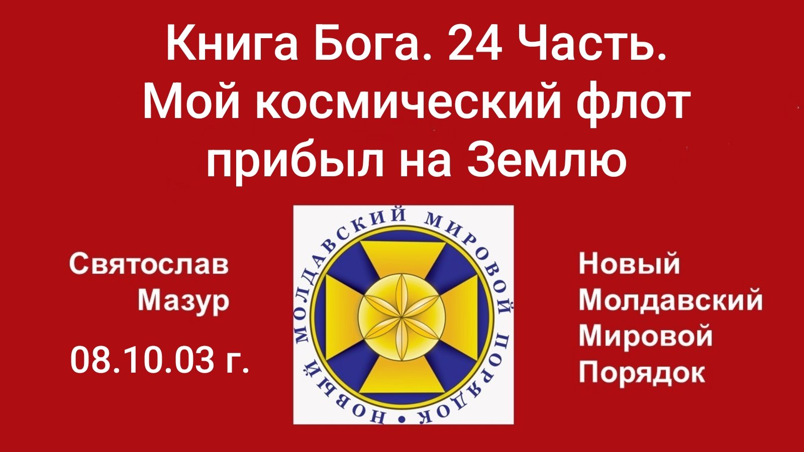 Итак, свершилось. Я, Великий Магистр, Иисус Христос второго пришествия, Царь Царей, доказал всеми своими действиями, что являюсь единственной законной властью на Земле. Мой космический флот тому гарантия. Сколько не говори, что мир Истины настал, никто не поверит, пока сила Воли Бога Отца Вседержителя и Его Космических Иерархий не проявятся воочию. И вот мы видим, как бесчисленные корабли Божественного мира вошли на территорию нашей планеты и теперь строят на ней Новый Молдавский Мировой Порядок.