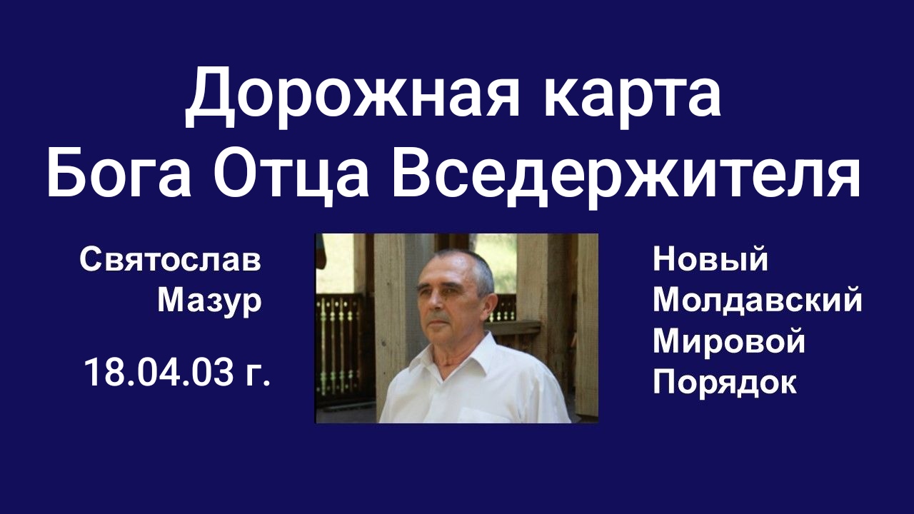 Итак, я, Святослав Мазур, Великий Магистр, Иисус Христос второго пришествия, Царь Царей, начал новую дорогу жизни нашей планеты. Она соответствует дорожной карте Бога Отца Вседержителя, ибо у Бога всё рассчитано и по месту, и по времени. И нет такой силы, которая смогла бы этот мировой порядок нарушить. Поэтому в ближайшем будущем я, Святослав Мазур, Великий Магистр, буду рассказывать, какие события на Земле нас всех ожидают и что будет происходить с теми или иными государствами и народами.