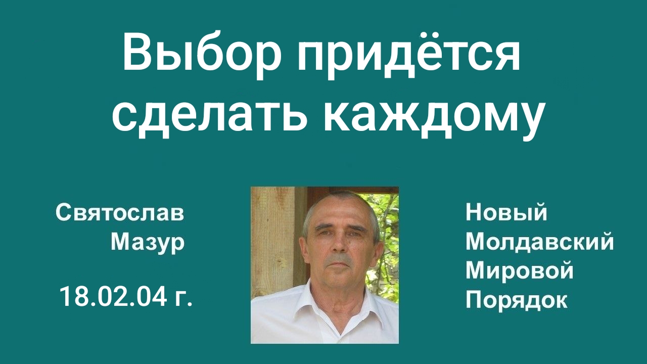Итак, я, Святослав Мазур, Великий Магистр, Иисус Христос второго пришествия, уже запустил на четвёртом уровне реальности процесс строительства Нового Молдавского Мирового Порядка и приказал моим Космическом Иерархиям освободить пространство от вредоносных сущностей, сегодня пытающихся помешать мне, Великому Магистру, исполнить волю Бога Отца Вседержителя и воплотить Его план строительства Божественного мира здесь, на Земле, как и на Небе. Этот конфликт интересов полностью и однозначно уничтожает прежнюю реальность, которая была запрограммирована на гибель нашей планеты. Конечно, людям доброй воли хотелось бы, чтобы момент перехода был мгновенным. Легли спать в царствии дьявола, а проснулись в Царствии Бога. Но так не бывает. Каждый человек, созданный по образу и подобию Бога Отца Вседержителя, должен сам решить, в каком мире он будет жить или погибать. Поэтому и существует Закон Свободы воли, и никто, даже сам Бог, не имеет права его нарушить. То, что мы все прошли точку невозврата - это однозначно. То, что мир дьявола проиграл мне, Великому Магистру, Битву Конца, это тоже однозначно. Но то, что никто за вас, дорогие мои, не будет делать этот выбор между добром и злом - это тоже однозначно. Поэтому готовьтесь, ведь момент Перехода уже близок. Он и будет состоять из момента выбора каждого человека между Богом и дьяволом, между добром и злом, между жизнью и смертью, между Христом и антихристом. Третьего не дано.