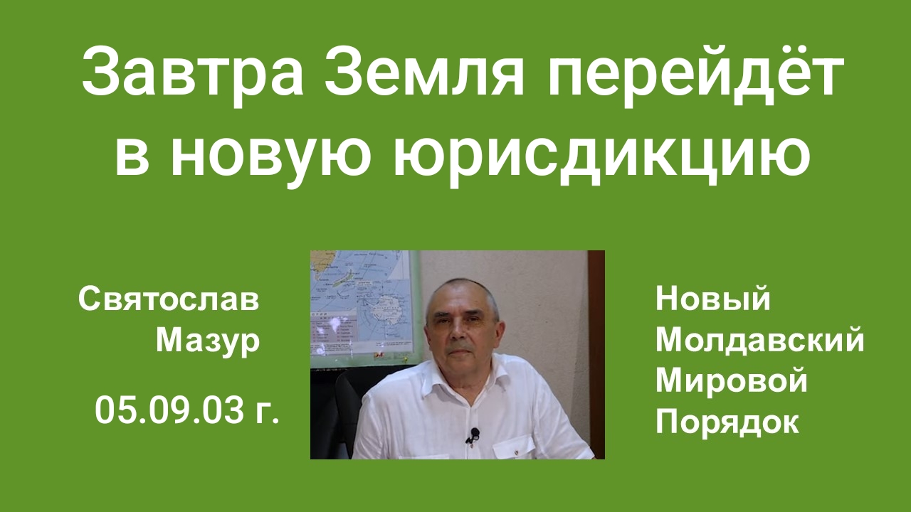 Я, Святослав Мазур, Великий Магистр, властью, данной мне Богом Отцом Вседержителем, сегодня заканчиваю переформатирование планеты и её перевод в новую юрисдикцию под власть Бога Отца Вседержителя. Завтра вы все окажитесь в новом мире, которого доселе на Земле никогда не существовало.