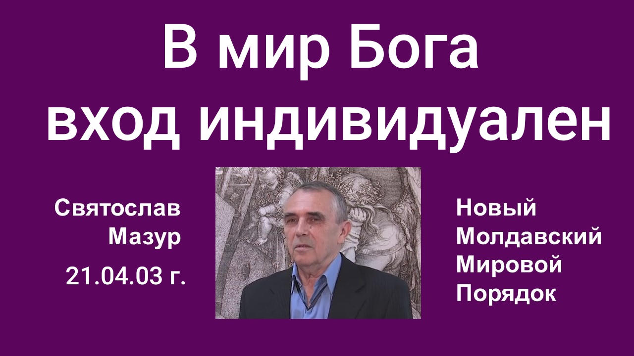 Сегодня, когда мир Истины настал, а я, Святослав Мазур, Великий Магистр, вступил в свои права, я однозначно заявляю, что только от меня одного сейчас зависит будущее мира. И поэтому сегодня я делаю официальное заявление: в мире нет силы, которая смогла бы мне, Великому Магистру, помешать исполнить Волю Бога Отца Вседержителя. А Его Воля требует от нас строительства единого мира без границ и разделений под Его руководством. Я же, Великий Магистр, от Его имени воплощаю на Земле идею под названием Новый Молдавский Мировой Порядок. Этот Новый Молдавский Мировой Порядок предполагает строительство на месте прежнего Республиканского Стадиона города Кишинёва главного Храма Бога Отца Вседержителя на Земле и создание нового руководства Великой Молдовы в границах молдавского княжества времён Штефана Великого.