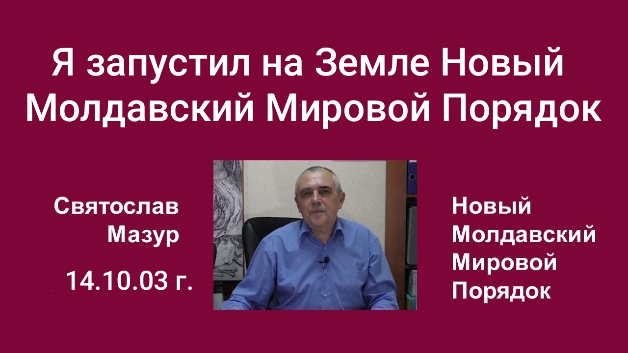 Сейчас, когда весь мир притих и ждёт дальнейших событий, я, Святослав Мазур, Великий Магистр, ответственно заявляю, что именно я, Святослав Мазур, Иисус Христос второго пришествия, завладел атрибутами абсолютной власти над Землёй как духовного, так и материального уровня. Эти магические артефакты дали мне возможность запустить на Земле Новый Молдавский Мировой Порядок. Всё, что ему не соответствует, а тем более противоречит, будет уничтожено.