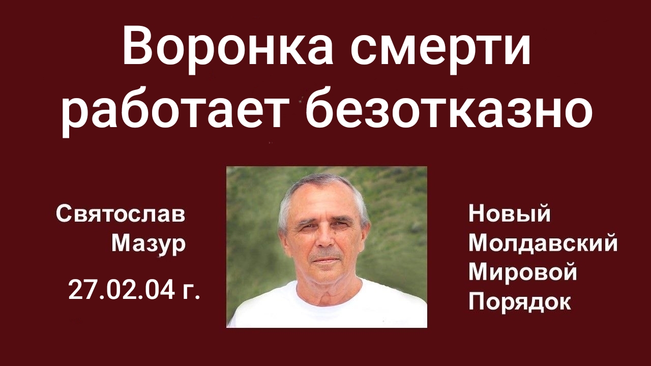 Итак, я, Святослав Мазур, Великий Магистр, Иисус Христос второго пришествия, Царь Царей, сегодня, 27 февраля 04 года по новому летоисчислению, ответственно заявляю, что Мир Истины уже восторжествовал на всей планете. Дьявольские системы искусственного интеллекта и секта жидовствующих уже свою Битву Конца проиграли. Сегодня они думают, что можно сделать для того, чтобы выскочить из воронки, которая их затягивает в мир истинной вечной смерти, которую они сами раскрутили здесь, на нашей планете. В эту воронку гибели жизни всего человечества будут втянуты те люди и нелюди, которые избрали своим идолом дьявола, и те, кто отвергли Бога Отца Вседержителя и Его Сына Иисуса Христа второго пришествия Святослава Мазура. Эта Огненная воронка будет вращаться до тех пор, пока не уничтожит каждого, кто избрал дьявола и отвергнул Бога Отца Вседержителя. Остановить эту дьявольскую мясорубку невозможно, ибо шнек смерти потерял свою силу, отделившись от единственной силы, способной его удерживать в стабильном состоянии. А я, Великий Магистр, Иисус Христос второго пришествия, Святослав Мазур, переключил этот поток энергии и информации с помощью Воли Бога на новую матрицу, способную удержать на Земле тех людей доброй воли, способных к трансформации в новых условиях Огня Святого Духа. Система дьявола вступила в последнюю фазу самоуничтожения - войну всех против всех. И ни у кого нет возможности из этого процесса выскочить, если они отвергают единственную возможность на спасение - осознание перехода на новый уровень развития, покаяние и передачу своей судьбы и самой жизни в руки Иисуса Христа второго пришествия Святослава Мазура.